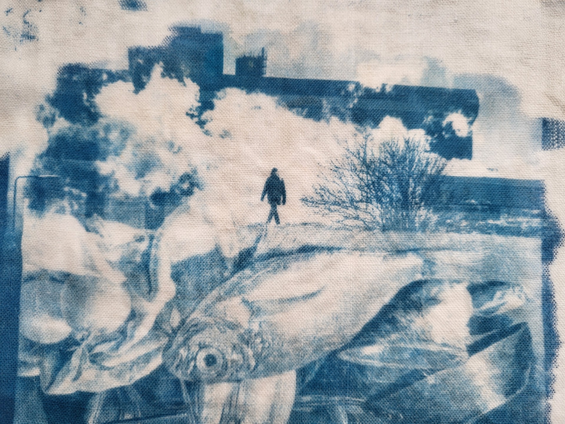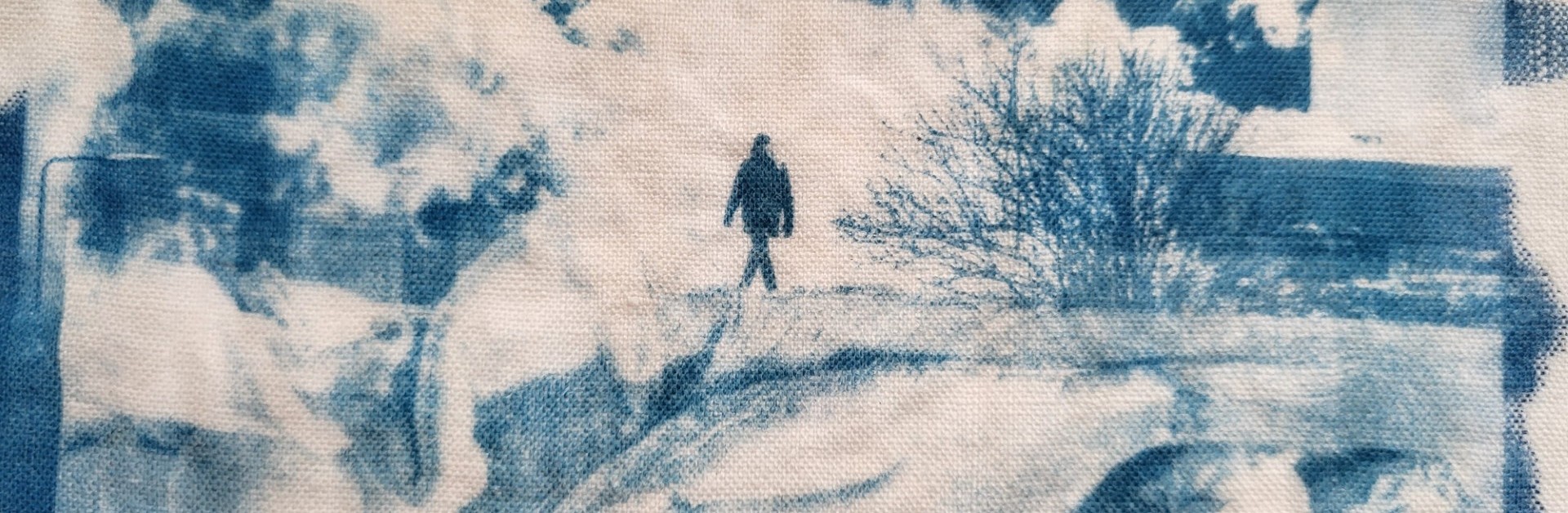 Tirage cyanotype sur tissu coton / une trame graphique ou un voile textile.