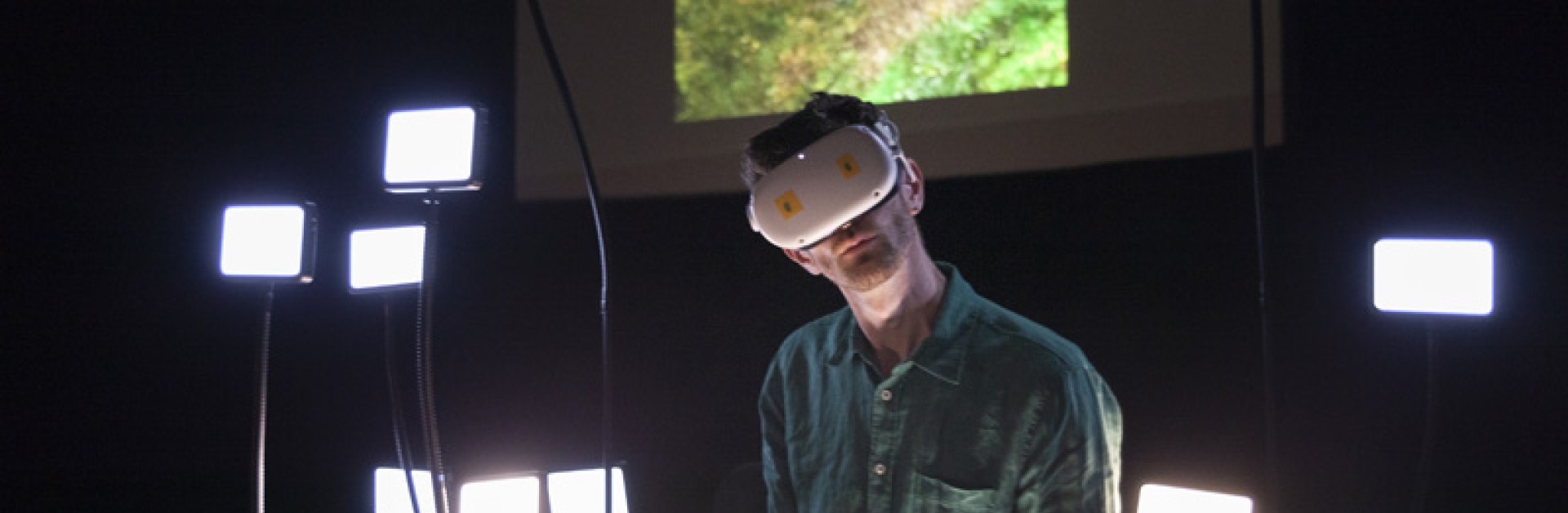 La solastalgie c’est ne plus reconnaître son paysage parce que celui-ci change trop rapidement. Plongé dans un casque de VR dont le contenu est retransmis sur écran, Raphaël Gouisset interroge nos environnements réels à travers un monde virtuel. Cet espace numérique devient la métaphore de nos paradoxes. Nous voyons les dérèglements qui touchent nos paysages, et malgré cela, nous changeons si peu. Quand on porte un casque de réalité virtuelle, il est si facile de se prendre un mur bien réel.